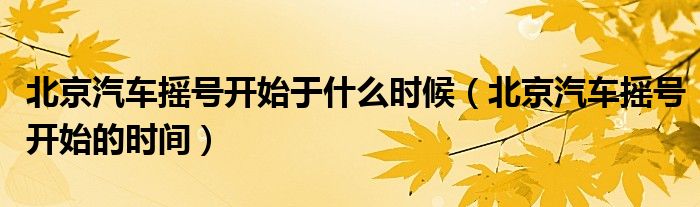 大家好,伊人來為大家解答以上問題。北京汽車搖號開始于什么時候,北京汽車搖號開始的時間很多人還不知道,現(xiàn)在讓我們一起來看看吧!