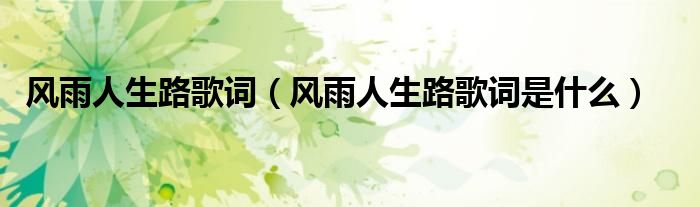 大家好,伊人來為大家解答以上問題。風雨人生路歌詞,風雨人生路歌詞是什么很多人還不知道,現(xiàn)在讓我們一起來看看吧!