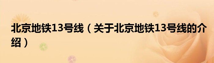 1、北京地鐵13號線(Beijing Subway Line 13),原稱北京城市輕軌鐵路,是中國北京市第三條建成運營的城市軌道交通線路,于2002年9月28日開通運營,標(biāo)志色為藤黃色。