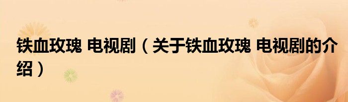 大家好,小新來(lái)為大家解答以上的問(wèn)題。鐵血玫瑰 電視劇,關(guān)于鐵血玫瑰 電視劇的介紹很多人還不知道,現(xiàn)在讓我們一起來(lái)看看吧!
