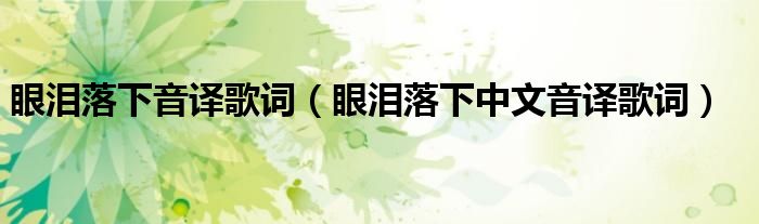大家好,伊人來(lái)為大家解答以上問(wèn)題。眼淚落下音譯歌詞,眼淚落下中文音譯歌詞很多人還不知道,現(xiàn)在讓我們一起來(lái)看看吧!