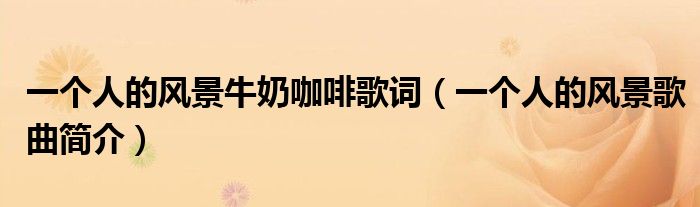 大家好,伊人來為大家解答以上問題。一個(gè)人的風(fēng)景牛奶咖啡歌詞,一個(gè)人的風(fēng)景歌曲簡介很多人還不知道,現(xiàn)在讓我們一起來看看吧!