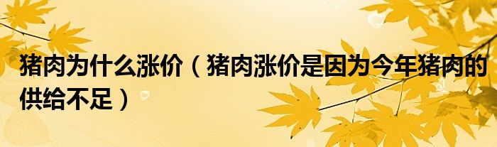 大家好,伊人來為大家解答以上問題。豬肉為什么漲價,豬肉漲價是因?yàn)榻衲曦i肉的供給不足很多人還不知道,現(xiàn)在讓我們一起來看看吧!