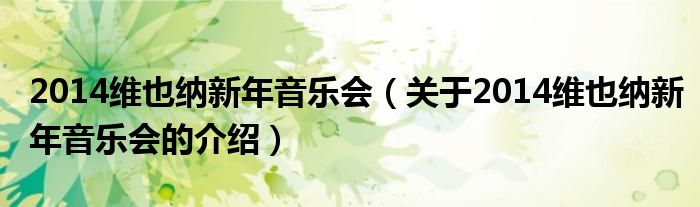大家好,小新來為大家解答以上的問題。2014維也納新年音樂會(huì),關(guān)于2014維也納新年音樂會(huì)的介紹很多人還不知道,現(xiàn)在讓我們一起來看看吧!