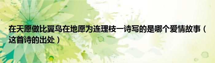 大家好,伊人來為大家解答以上問題。在天愿做比翼鳥在地愿為連理枝一詩寫的是哪個愛情故事,這首詩的出處很多人還不知道,現(xiàn)在讓我們一起來看看吧!