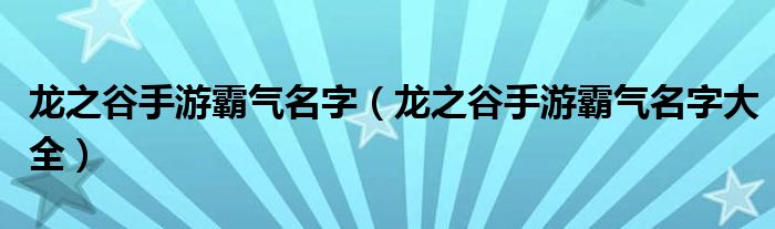 大家好,伊人來為大家解答以上問題。龍之谷手游霸氣名字,龍之谷手游霸氣名字大全很多人還不知道,現(xiàn)在讓我們一起來看看吧!