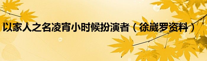 大家好,伊人來為大家解答以上問題。以家人之名凌宵小時(shí)候扮演者,徐崴羅資料很多人還不知道,現(xiàn)在讓我們一起來看看吧!