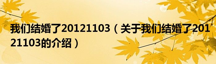 大家好,小新來為大家解答以上的問題。我們結(jié)婚了20121103,關(guān)于我們結(jié)婚了20121103的介紹很多人還不知道,現(xiàn)在讓我們一起來看看吧!