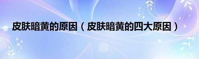 大家好,伊人來為大家解答以上問題。皮膚暗黃的原因,皮膚暗黃的四大原因很多人還不知道,現(xiàn)在讓我們一起來看看吧!